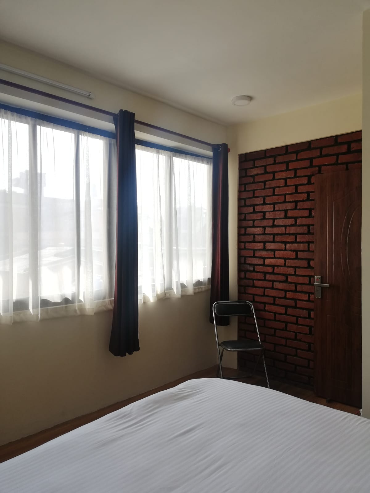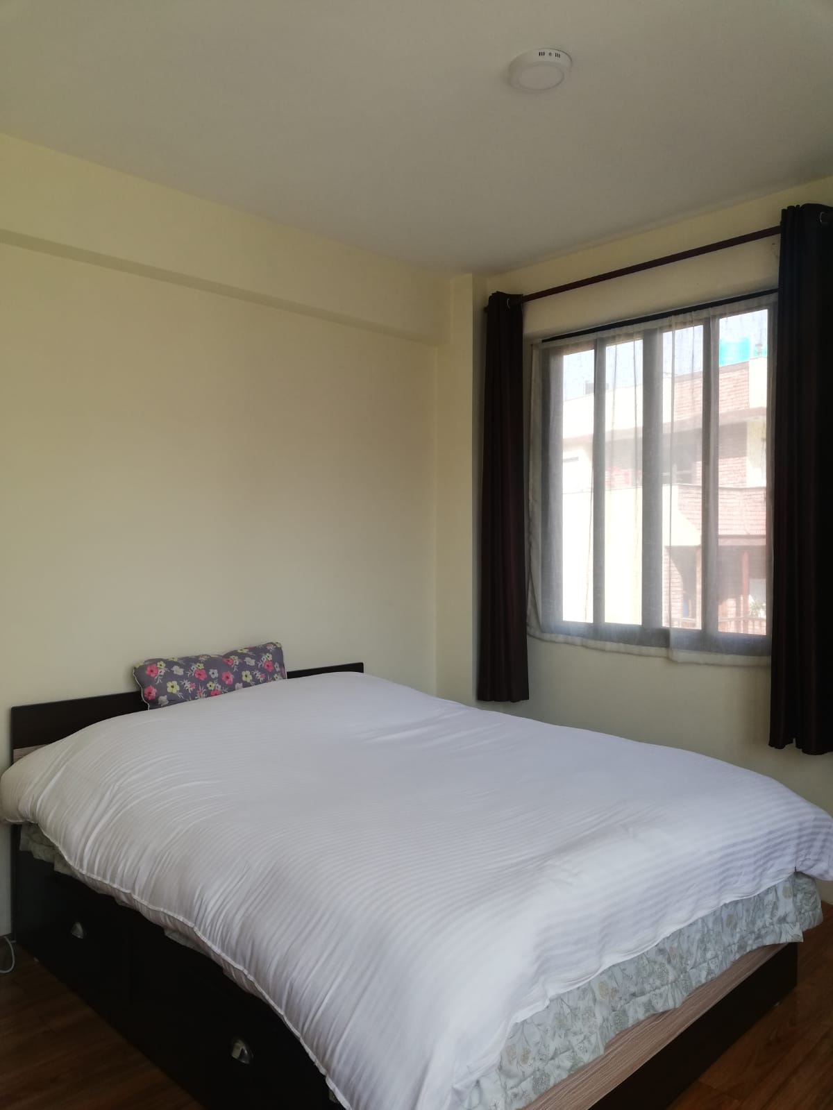 Two bedrooms with 1 attached bath and 1 common. Living kitchen & dining space. In a quite peaceful residential neighborhood with ample sunlight situated in courtyard near patan durbar square. Semi furnished best suitable for working class individual couple/ single/ expat. Parking shade available for bikes. Sufficient water supply of tap water (Melamchi water supply).